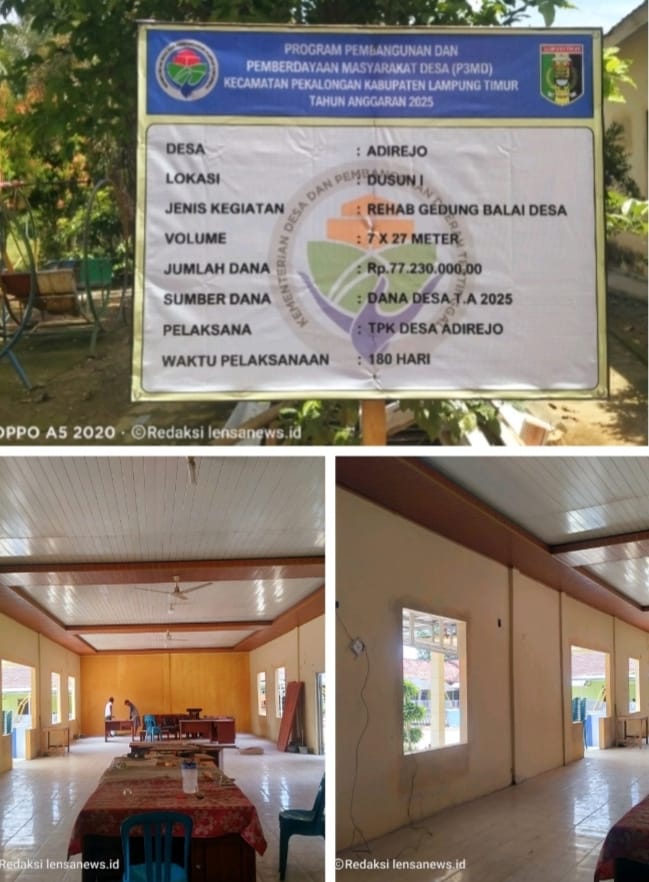 Dibuktikannya balai Desa Adirejo Kecamatan Pekalongan Kabupaten Lampung Timur, tampak berubah dari sebelumnya, dengan sudah di mulainya rehab gedung balai desa bukti nyata dalam kepemimpinan Andi J Susanto, terlihat mengalami perubahan yang signifikan.