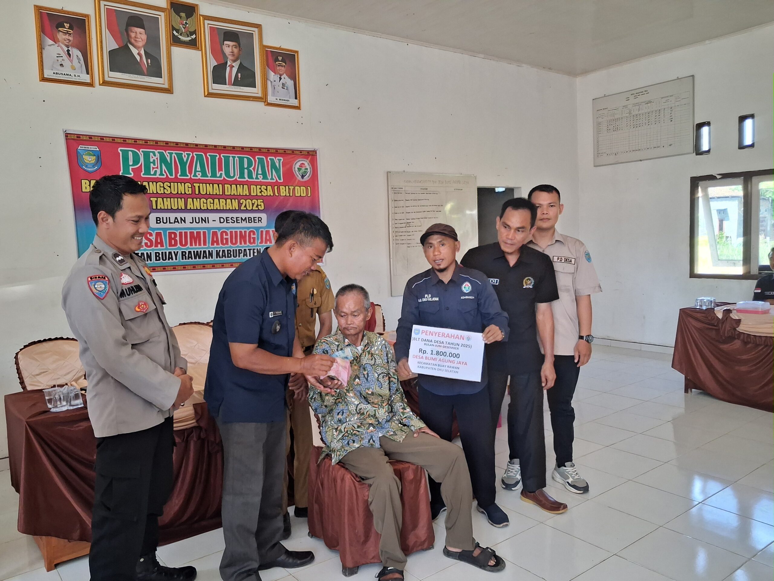 OKU Selatan,Preventif.co.id — Pemerintah Desa (Pemdes) Bumi Agung Jaya (BAJ) Kecamatan Buay Rawan, Kabupaten Ogan Komering Ulu (OKU) Selatan realisasikan Bantuan Tunai Langsung (BLT) Dana Desa (DD) Tahap II Periode Juni-Desember 2025 kepada 33 Keluarga Penerima Manfaat (KPM) sebesar Rp 1.800. 000 per KPM, dibalai Desa BAJ, Selasa (04/11/2025).