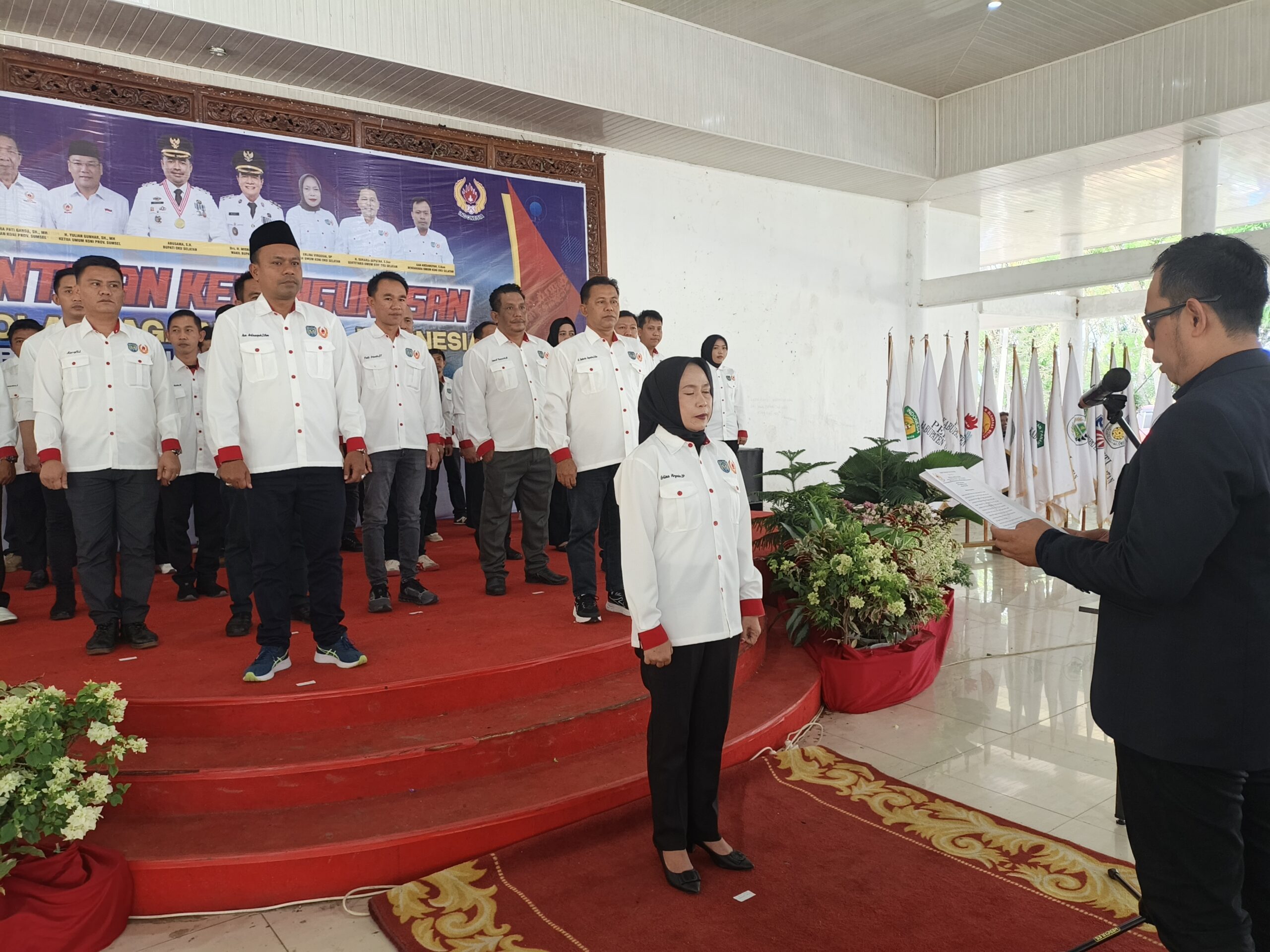 Pelantikan tersebut dilakukan langsung oleh Ketua KONI Sumatera Selatan, H. Yulian Gunhar. Dalam prosesi tersebut, turut dilantik Ketua KONI OKU Selatan yang baru, Erlina Virgosia beserta jajaran pengurus lainnya.