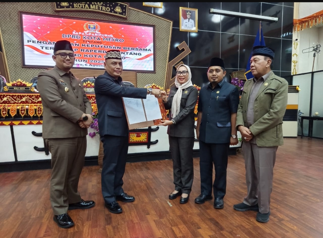 Metro Lampung,Preventif.co.id Kota Metro kini memiliki peta jalan pembangunan yang jelas untuk lima tahun ke depan. Pada tanggal 6 Agustus 2025, Rapat Paripurna Dewan Perwakilan Rakyat Daerah (DPRD) Kota Metro resmi mengesahkan Peraturan Daerah (Perda) tentang Rencana Pembangunan Jangka Menengah Daerah (RPJMD) Tahun 2025-2029.