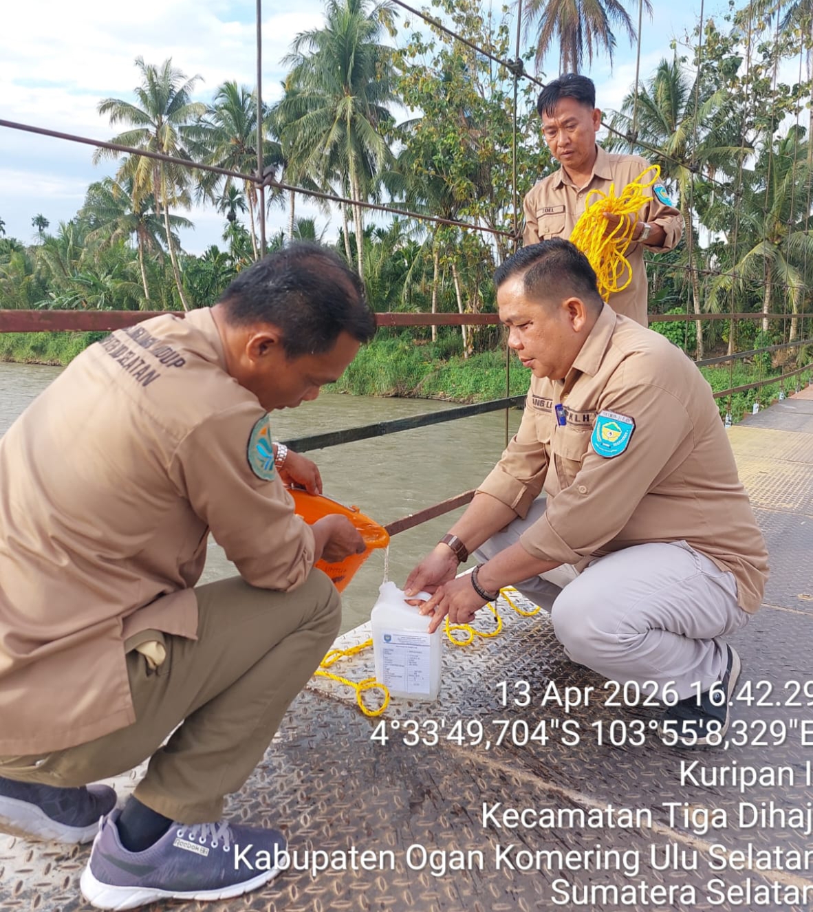 OKU Selatan,Preventif.co.id –Dinas Lingkungan Hidup (DLH) Kabupaten OKU Selatan melaksanakan kegiatan pengambilan sampel air tahap I di sejumlah titik sungai yang tersebar di wilayah Kabupaten OKU Selatan. Selasa (14/04/2026).