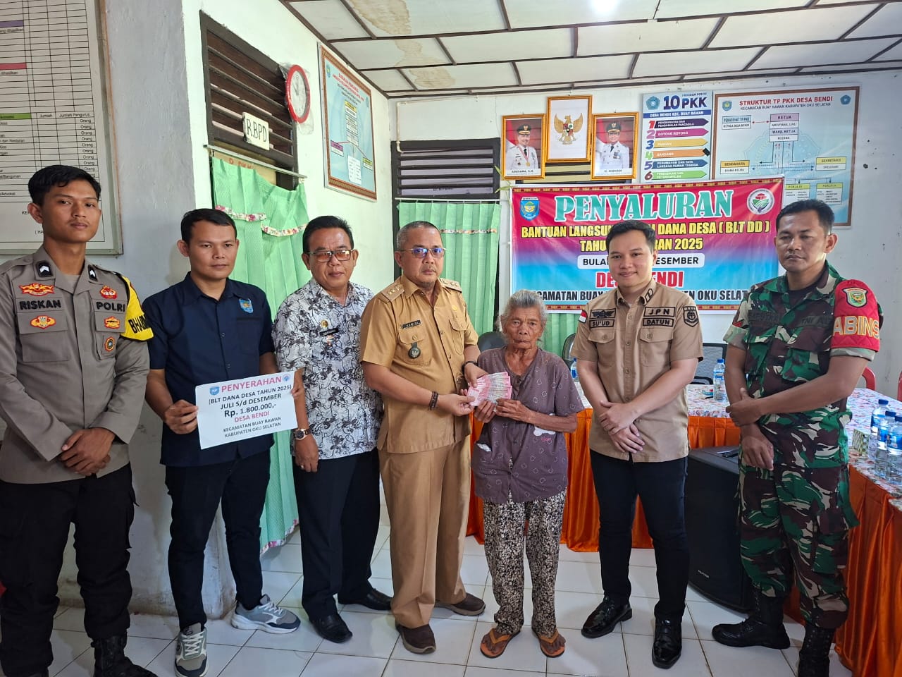 OKU Selatan,Preventif.co.id- Pemerintah Desa (Pemdes) Bendi, Kecamatan Buay Rawan, Kabupaten OKU Selatan realisasikan Babtuan Langsung Tunai (BLT) Dana Desa Tahap II Tahun 2025 ke 21 Keluarga Penerima Manfaat (KPM) priode Juli-Desember, Kamis (30/10/2025).
