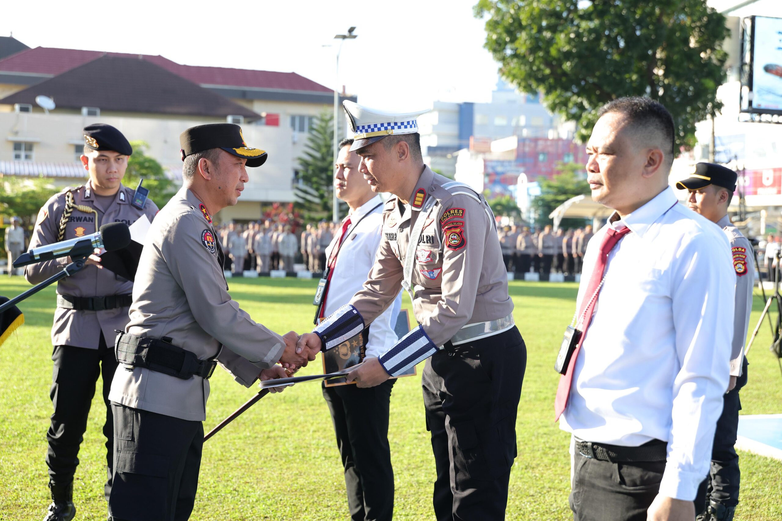 Atas dedikasi dan keberhasilan tersebut, Kasat Lantas Polres OKU Selatan AKP Hendri Rozim, SP., M. Si menerima penghargaan dari Kapolda Sumatera Selatan dihalaman Apel Mapolda Sumsel, Senin ((13/04/2026).