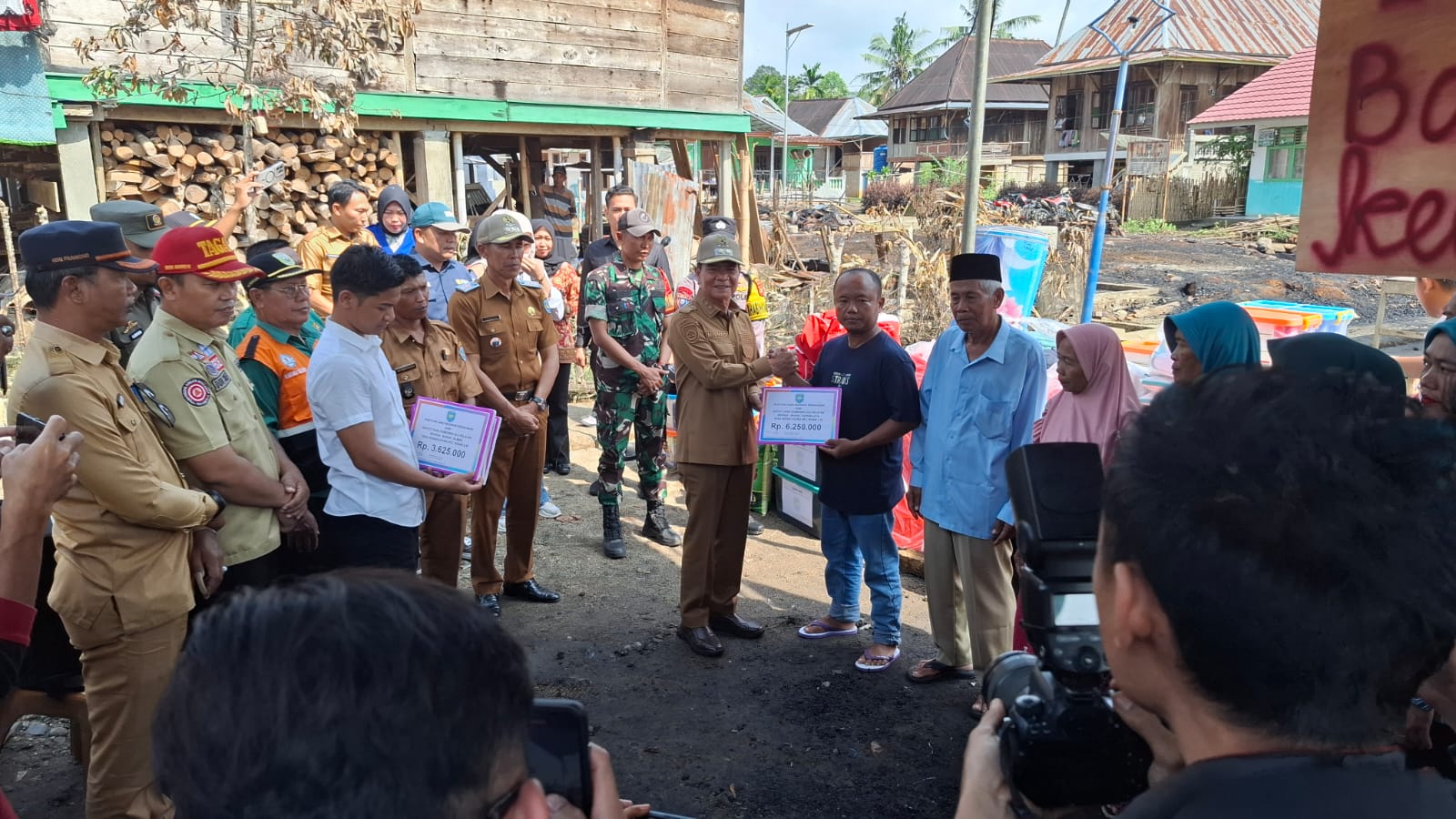 Wabup OKUS menyerahkan langsung bantuan kebutuhan sementara bagi korban kebakaran diwilayah tersebut berupa makanan, kasur, sejumlah uang dan perlengkapan lainnya.