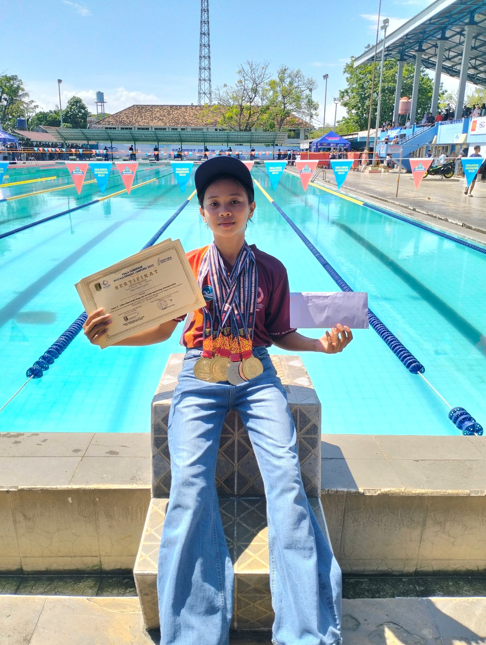 Widya Batrisya Fahira, mengungkapkan alhamdullilah puji syukur kehadirat Allah SWT di event kejuaraan renang piala Gubernur Lampung, tahun ini saya mendapatkan kategori perenang terbaik yang bisa saya persembahkan kepada sekolahan saya SMPN 7 Metro, yang mana saya baru duduk di kelas 7 siswi baru di SMPN 7 Metro Lampung di tahun 2025 ini.” ungkap Widya.