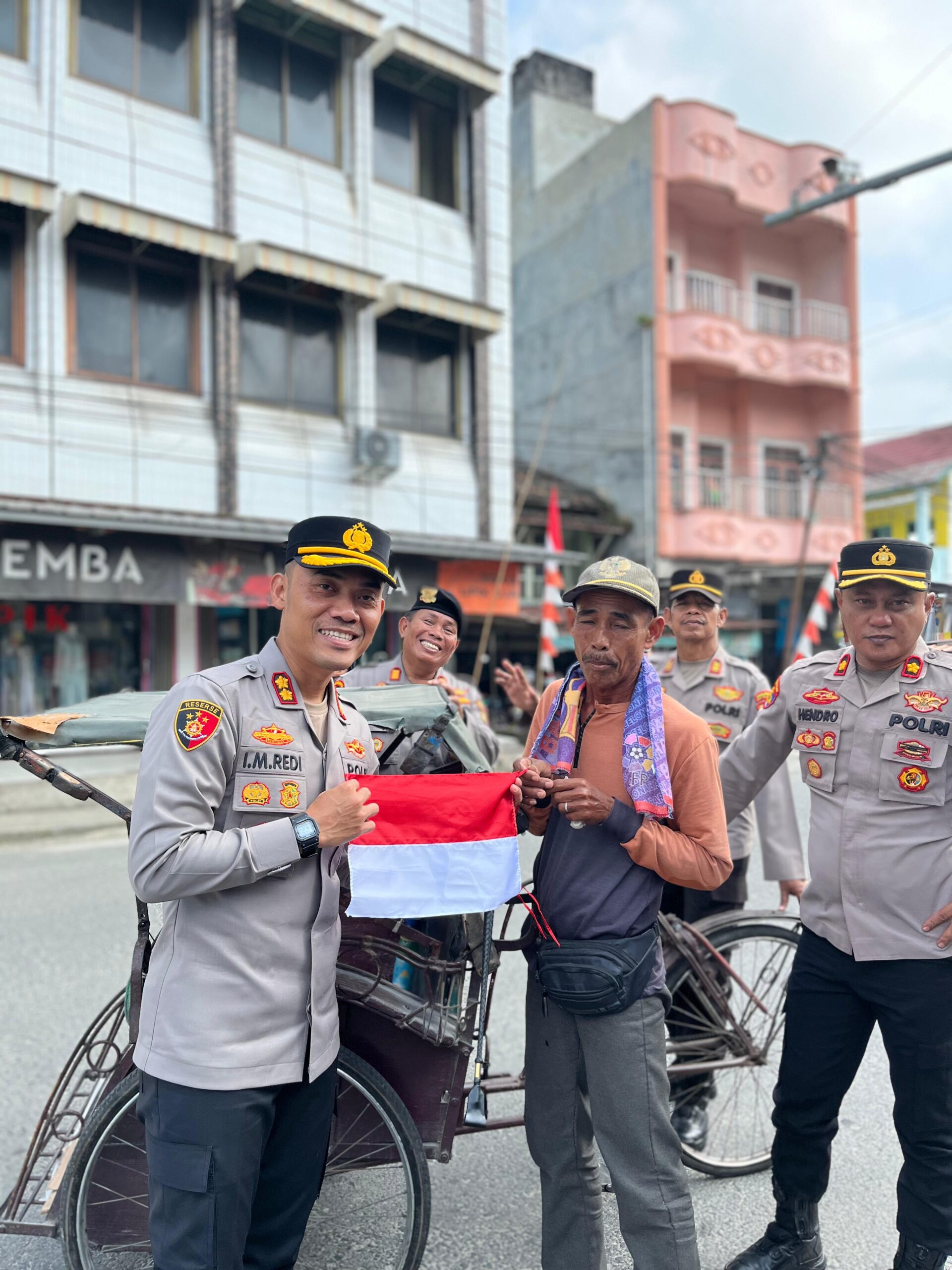 Turun ke Jalan, Kapolres OKUS Pimpin Pembagian Bendera Merah Putih